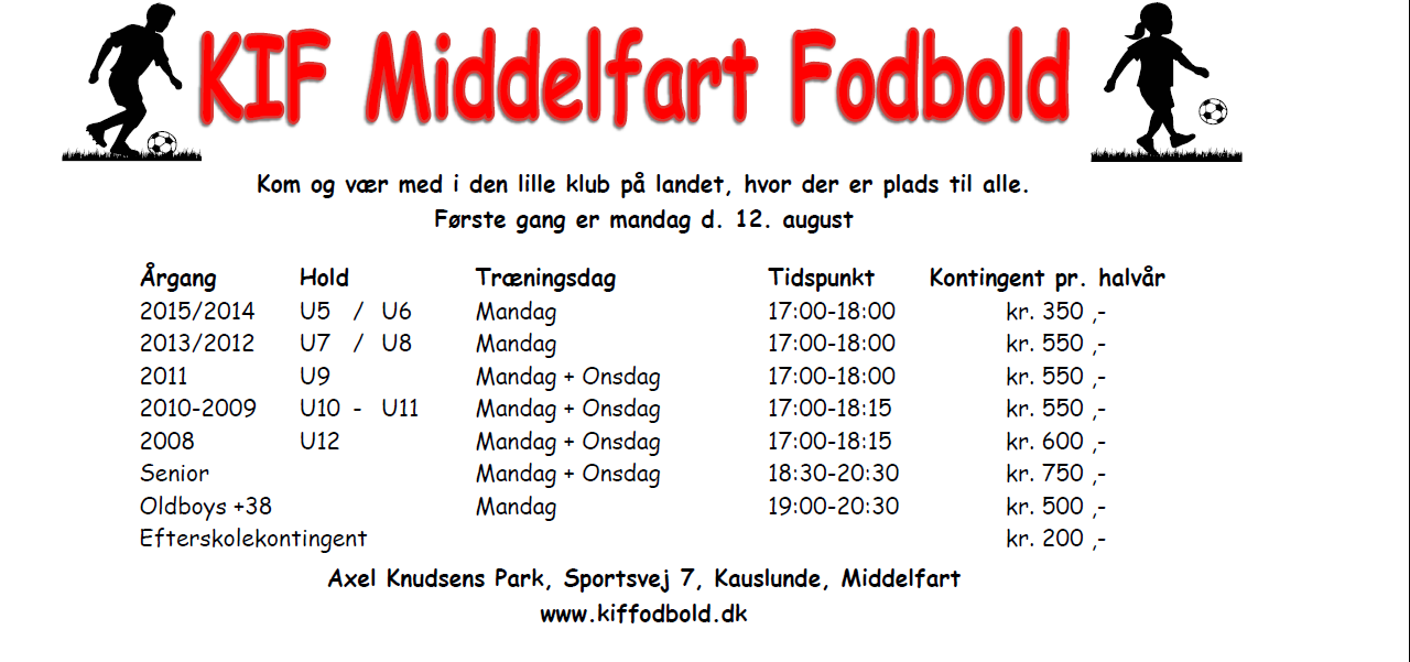 Opstart efter sommerferien er mandag den 12/8 kl. 17. Vi glæder os til at se både nye og gamle spillere.